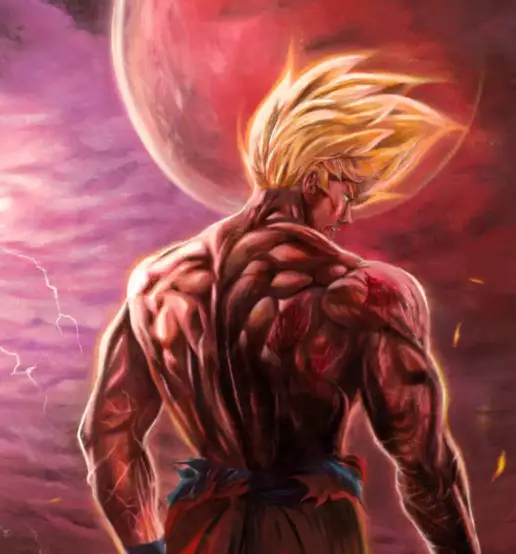 Illustration de Songoku vs Freezer dans un style réaliste.